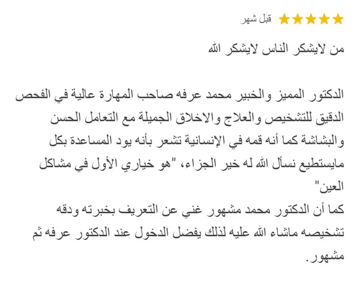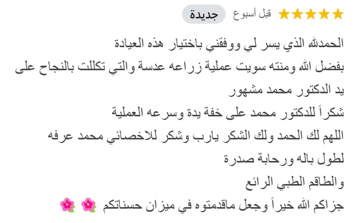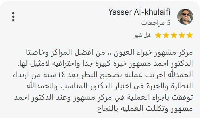 الثقة الحقيقية تُبنى من تجارب المرضى الذين خاضوا التجربة بالفعل. في عيادة د. محمد مشهور، شارك العديد من عملائنا قصص نجاحهم بعد عملية الفيمتو سمايل لتصحيح النظر، حيث أكدوا على سرعة التعافي، الراحة أثناء الإجراء، والتحسن الملحوظ في الرؤية منذ الأيام الأولى. هذه الشهادات تعكس التزامنا بتقديم أفضل رعاية طبية ونتائج تفوق التوقعات.